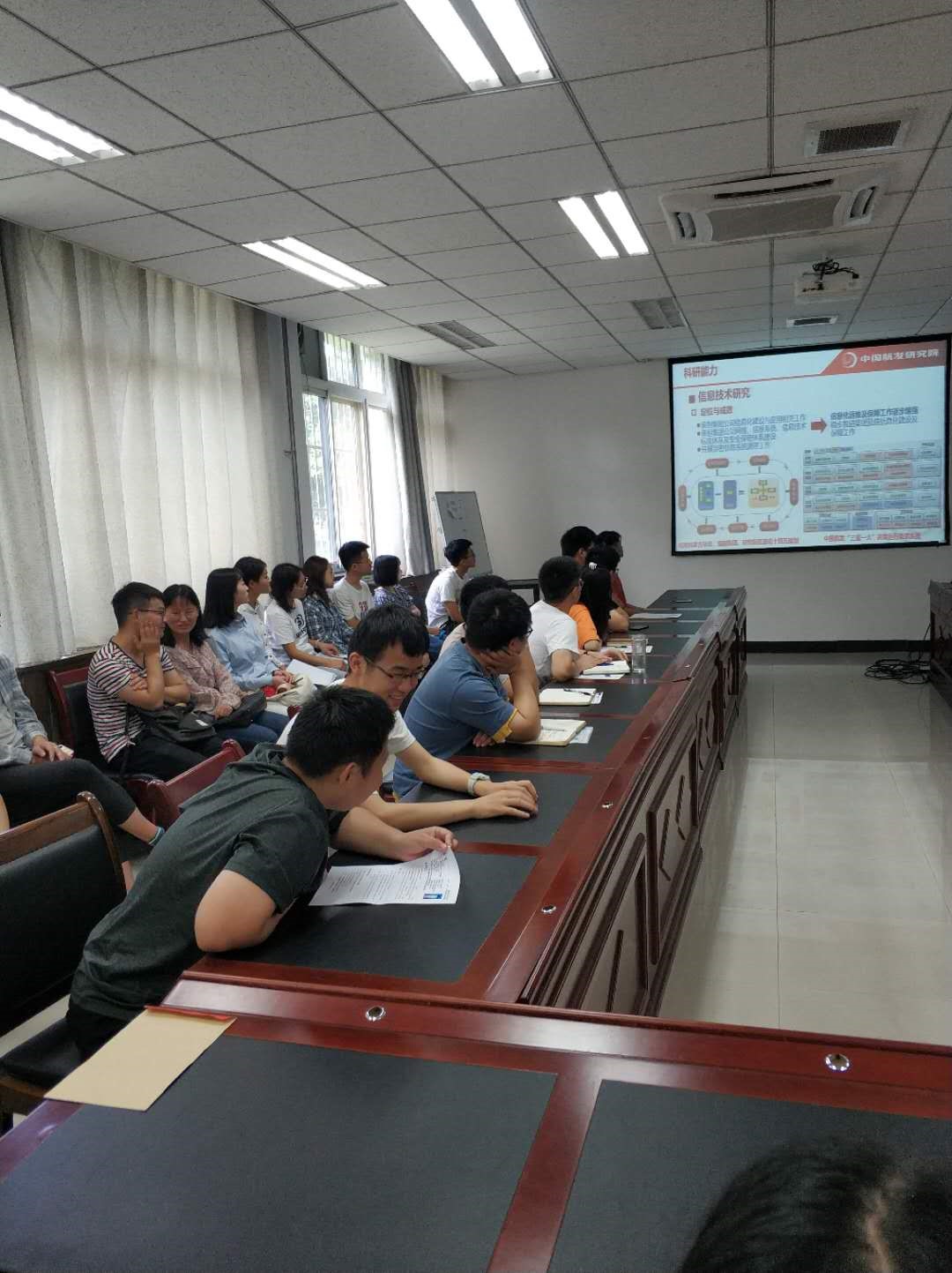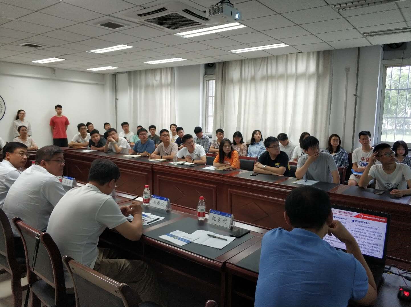随后,研究院副院长温泉就该单位的布局和构成以及研究院的发展历程做了详细的概述,阐明了中国航空发动机研究院战略性、前沿性和基础性的业务定位与该单位制定的一系列使命任务,强调了研究院“整体规划、突出重点、分步实施、逐步到位”的发展思路,列出了未来30年内研究院“五个里程碑”的发展目标。研究院人力资源部副部长陈富利围绕单位组织机构设置、集团科研能力以及单位党建文化和群团建设等集团内部情况向同学们进行了详细的介绍。陈部长积极向同学们介绍了相关政策和各种人才引进计划,以诚挚的态度向我院2021届研究生毕业生表示了欢迎和期待,他表示希望有志者能够来到中国航空发动机研究院一起见证祖国航空事业的发展壮大。